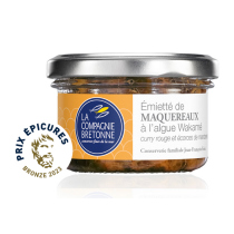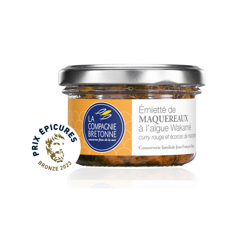 Nous avons associé le maquereau à l’algue wakamé. Originaire du Japon, cette algue brune est cultivée sur les côtes Bretonnes. C’est une algue que nous avons choisie pour sa finesse et ses saveurs marines mais aussi pour sa texture qui résiste particulièrement bien au traitement thermique lié à la stérilisation des verrines.