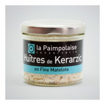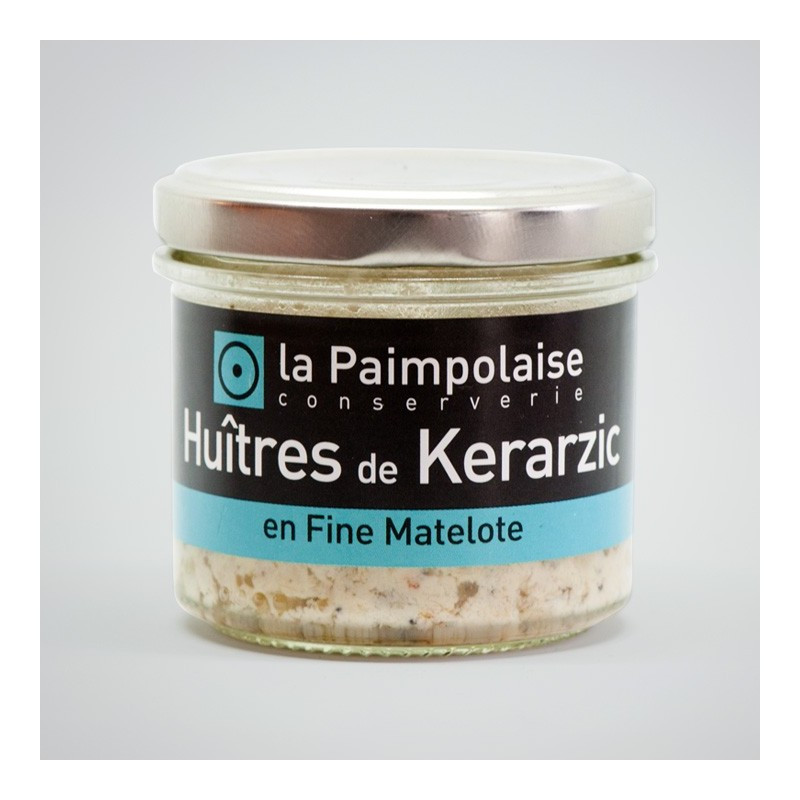 Ingrédients : chairs d’huîtres (mollusque) 23%, eiglefin (poisson) 23%, crème (lait), poireaux, oignons, champignons, citron, huile d’olive, sel de guérande, algues(dulse, aguar aguar, poivre, graine de pavot et séchuan.