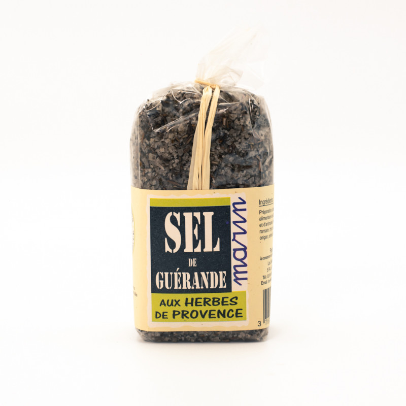 Ingrédients : Gros sel gris de Guérande IGP 90 %, herbes de Provence (romarin, thym, basilic, marjolaine,sariette, origan, cerfeuil, fenouil)