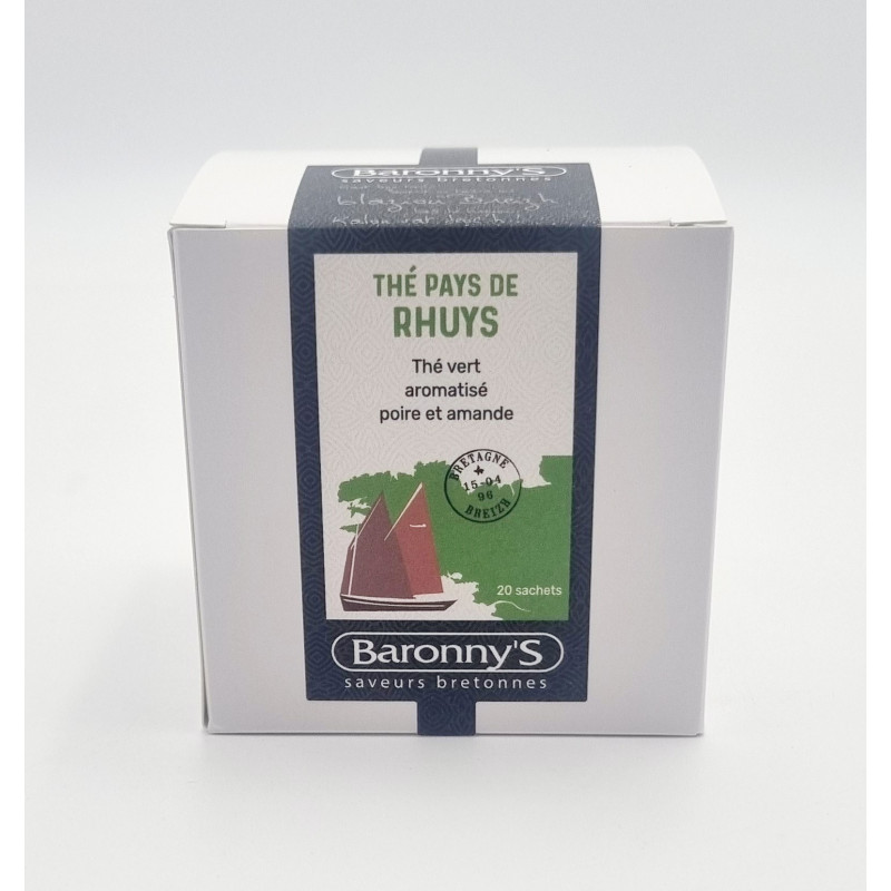 Thé vert PAYS DE RHUYS est un thé vert sencha aromatisé poire et amande.