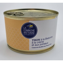 Thon albacore thunnus albacares 37 %, eau, oignons, crème (lait) 10%, échalotes, poireaux 6%, vin blanc (sulfites), carottes, huile de colza, beurre (lait), sel, sucre, épice, poivre, persil.